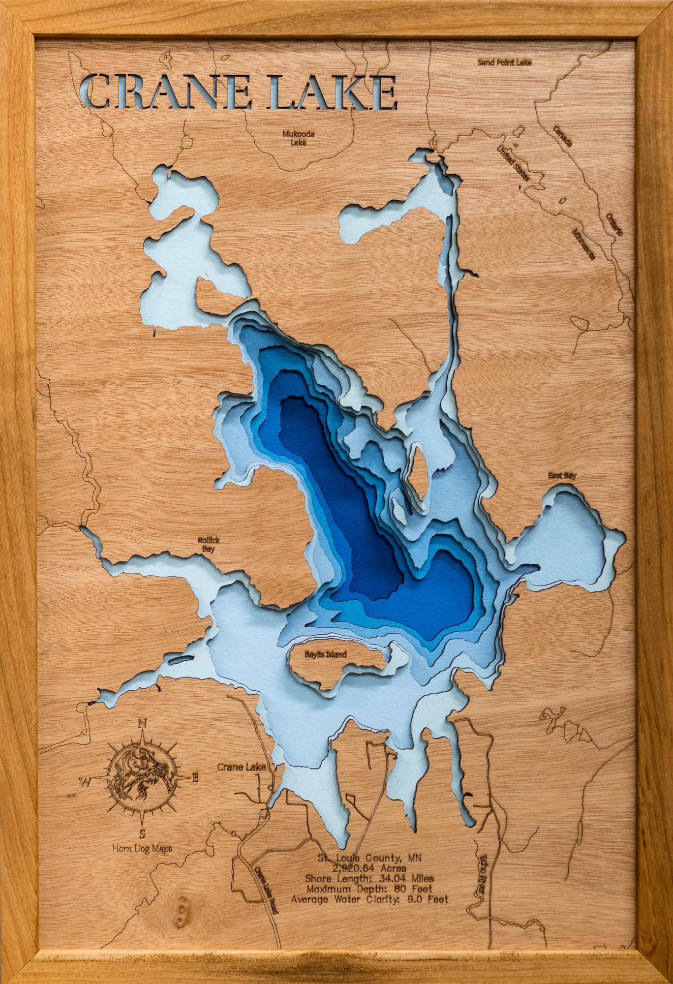 Amazon.com: Crane Lake, Minnesota: Framed Wood Laser Engraved Map