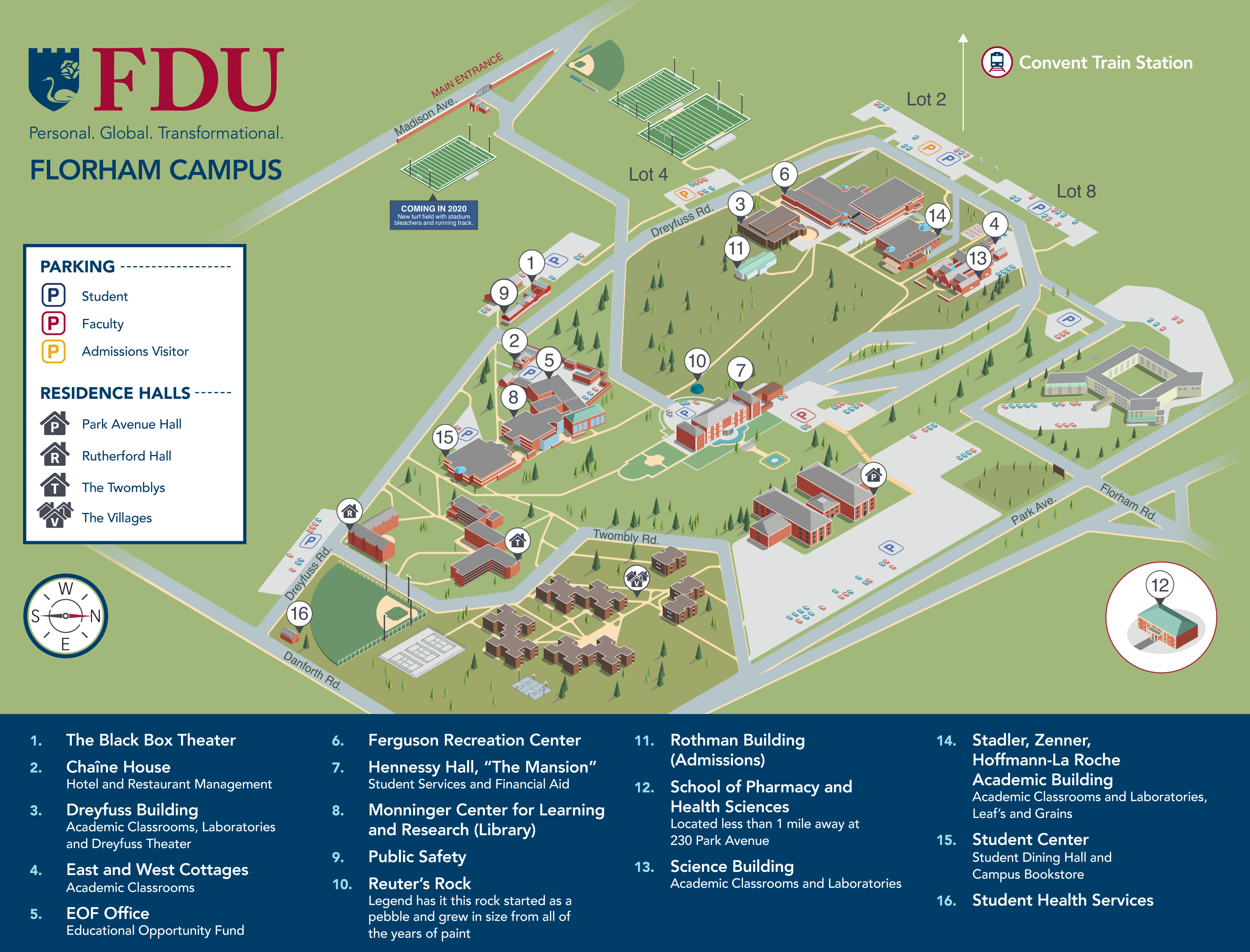 Fairleigh Dickinson University Madison Campus Map Florham Maps and Directions | Fairleigh Dickinson University: Fairleigh Dickinson University has two campus locations in New Jersey for students to choose from: the suburban Florham Campus in Madison and the Metropolitan Campus in Teaneck. The two locations . Freshmen Theatre Arts Majors will study Basic Acting, Voice, Stagecraft and the History of Theatre on the campus at Madison, NJ. During the student’s second semester of Sophomore year or first .
