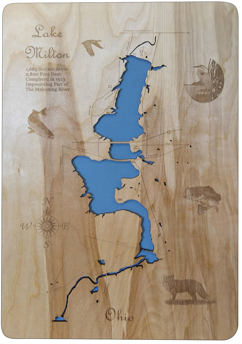 Lake Milton, OH 3D Wood Map | Laser etched Nautical Decor